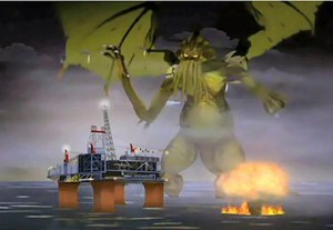 BP Oil, now renamed as DP (Dependable Petroleum) Oil drills into the ocean floor and rips a hole into another dimension; unleashing Elder Ones, Shoggoths, and more Lovecraftian horrors onto beach-goers, fishermen, tourists, and the rest of the unsuspecting public.