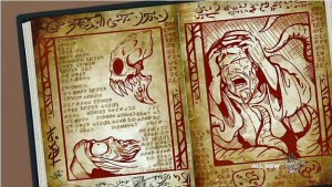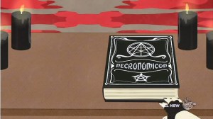The Necronomicon making its appearance from the hands of one of the Goth kids: