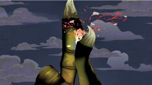 Cthulhu grabbing and destroying the terribly evil (according to Cartman) Justin Bieber: